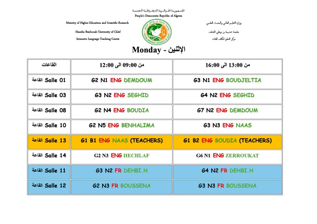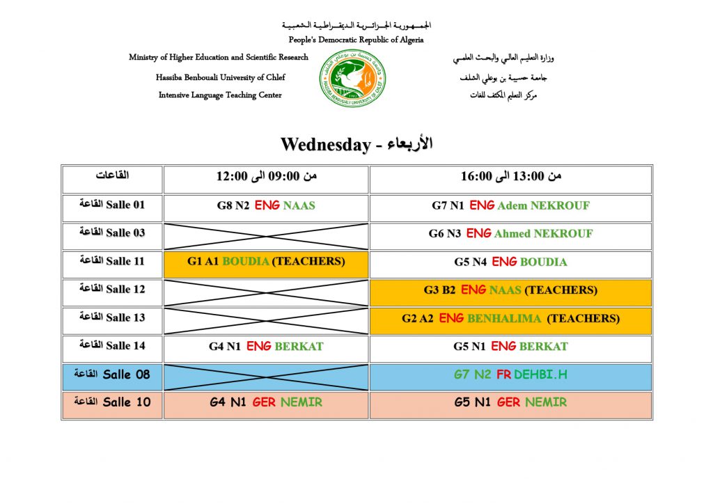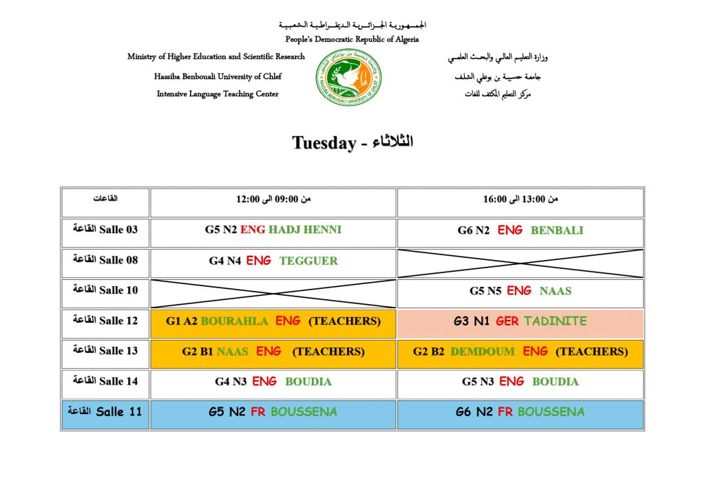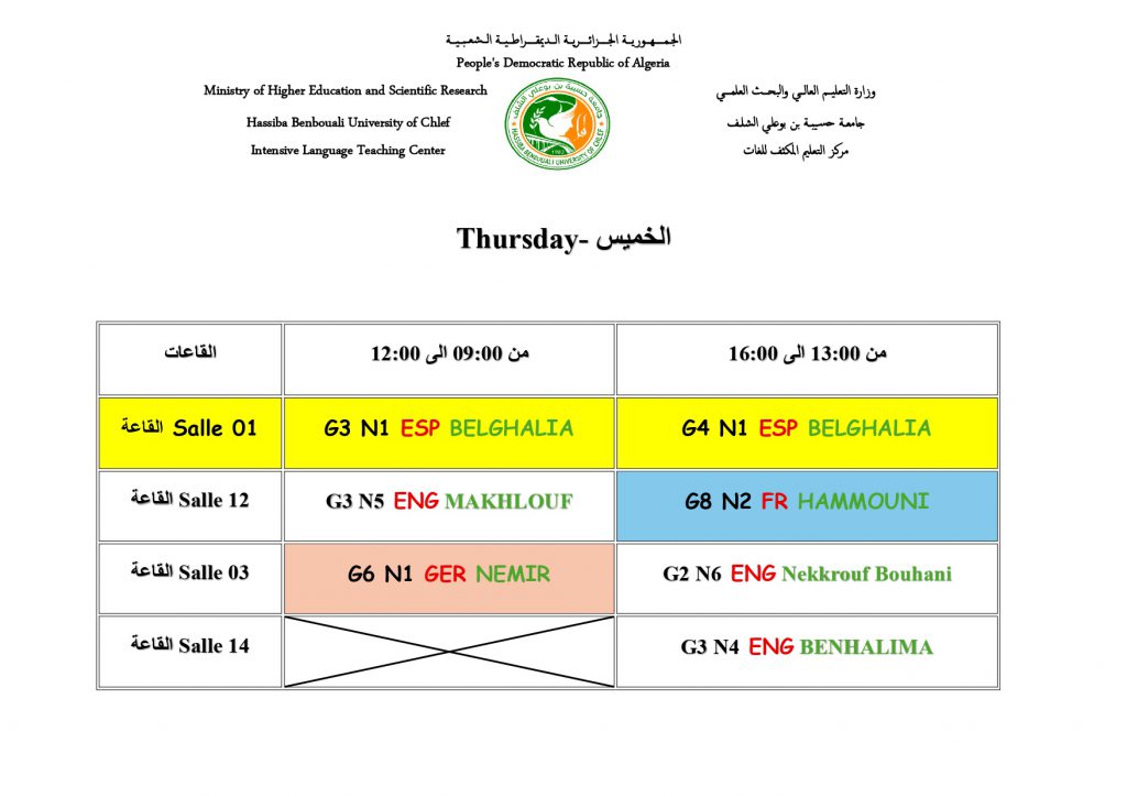 تعلن إدارة مركز التعليم المكثف للغات (CEIL) بجامعة حسيبة بن بوعلي بالشلف كافة المتعلمين المسجلين للموسم الجامعي 2025-2026، عن نشر القوائم النهائية للأفواج والجداول الزمنية المحدثة.